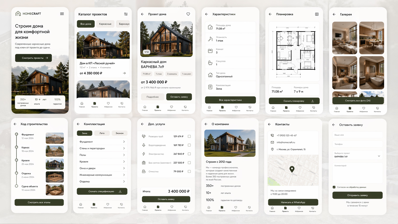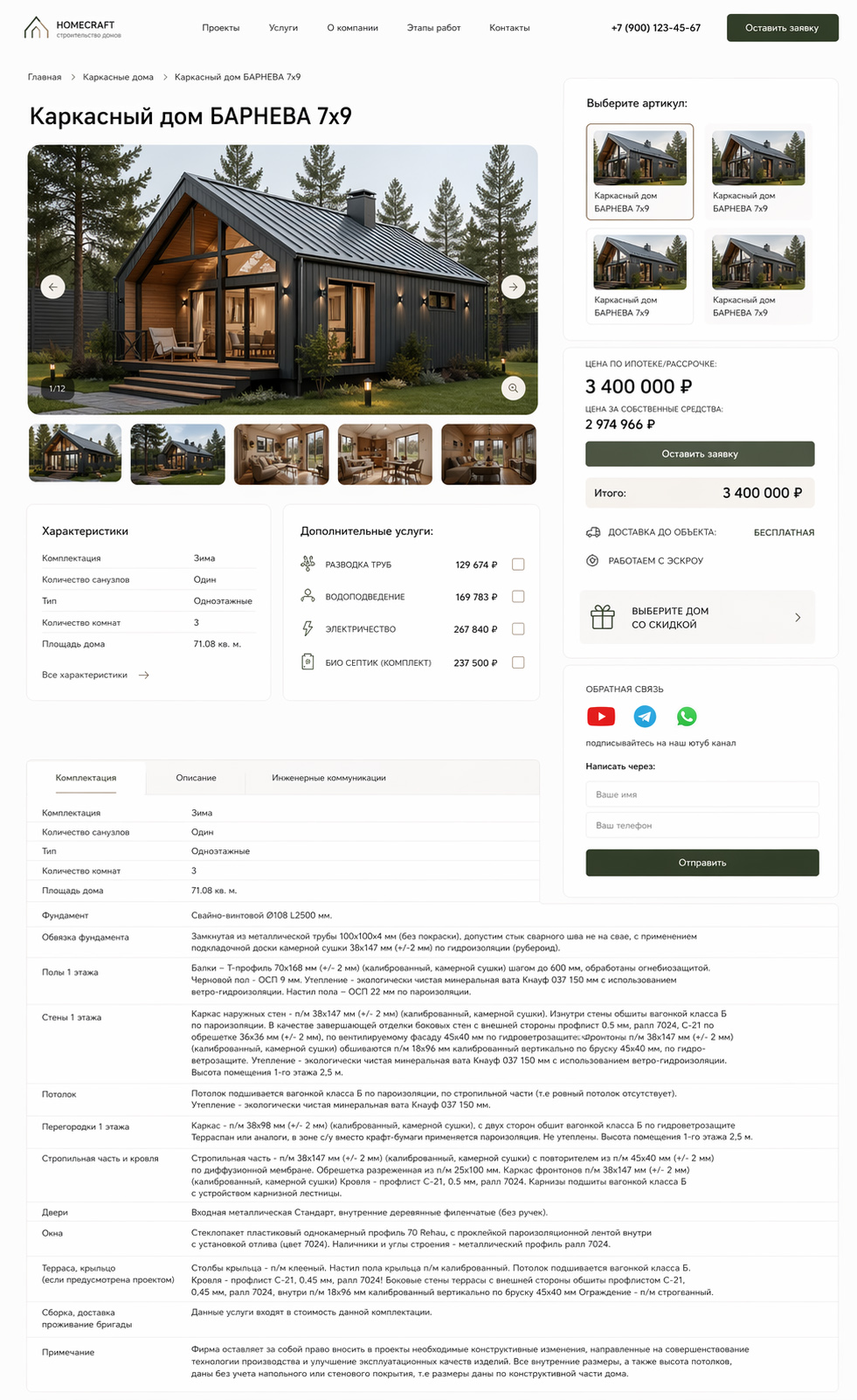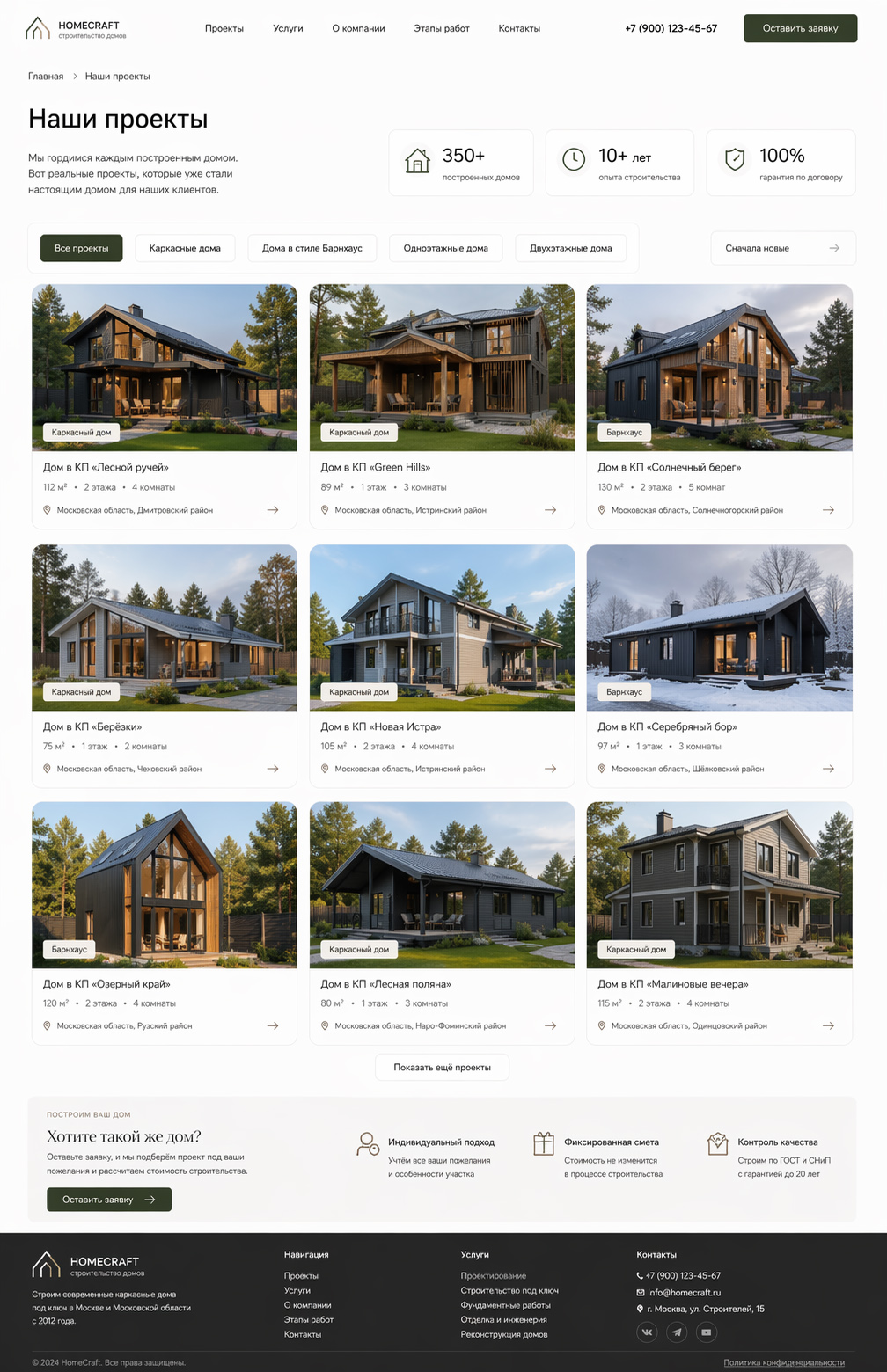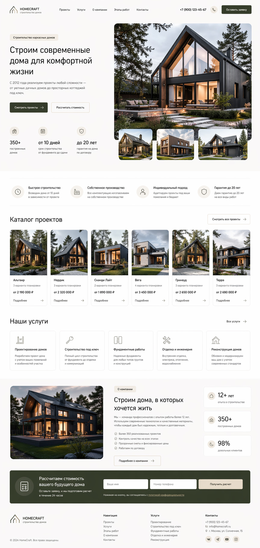 Основная идея — уйти от шаблонного “строительного сайта” и сделать продукт, который выглядит как современный бренд: чисто, аккуратно и дорого.